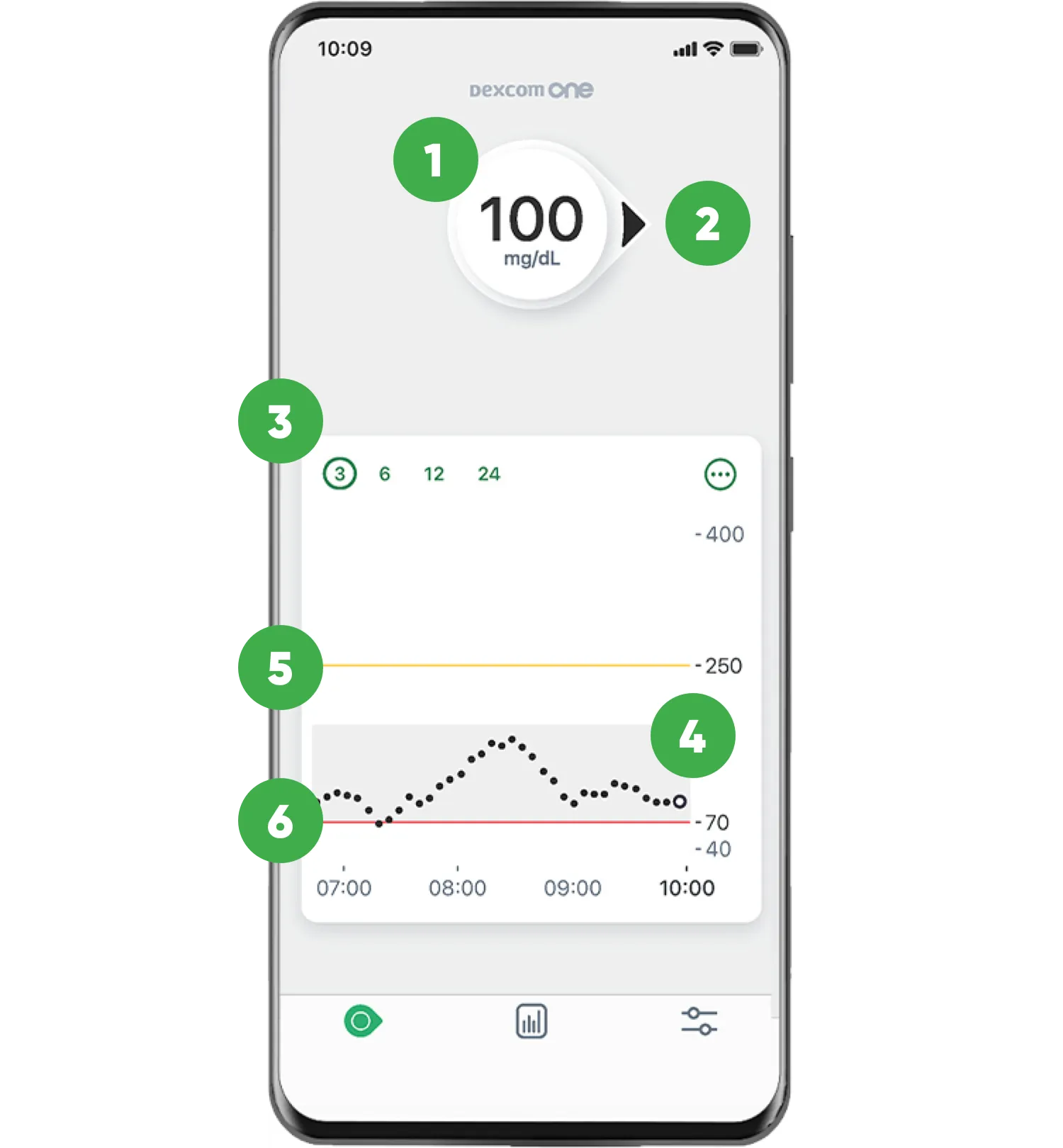 Dexcom ONE ti offre un'App dedicata per aiutarti a gestire meglio il tuo glucosio, con letture aggiornate ogni 5 minuti e avvisi di glucosio sul tuo dispositivo mobile compatibile*