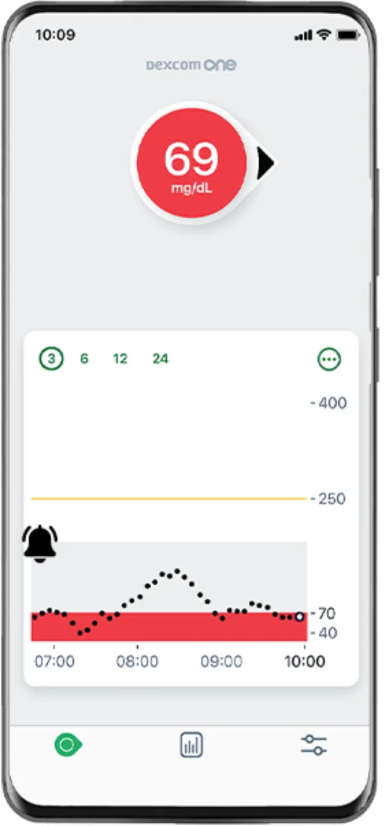 Hai ricevuto un avviso di glucosio basso da Dexcom ONE. Dopo aver assunto i carboidrati di emergenza (come da indicazione del tuo medico) per correggere l'ipoglicemia, dovresti ricordarti di riverificare il valore del tuo glucosio dopo 15 minuti. Con la modalità Snooze impostata a 15 minuti per l'avviso di ipoglicemia, sarà Dexcom ONE ad avvisarti automaticamente con un secondo avviso solo nel caso in cui il livello di glucosio non sia rientrato nell'intervallo ottimale.