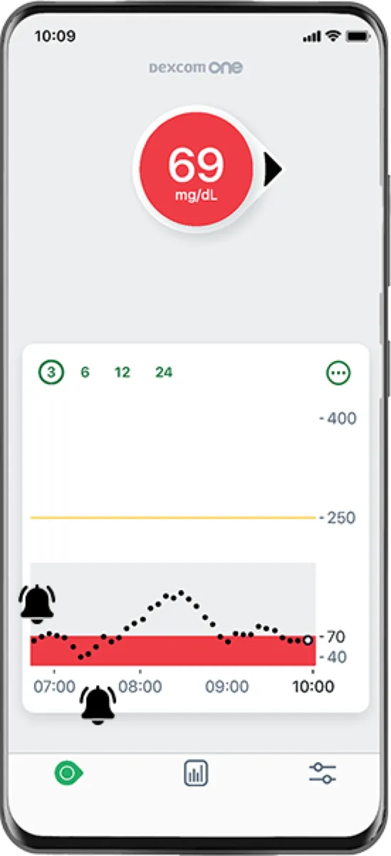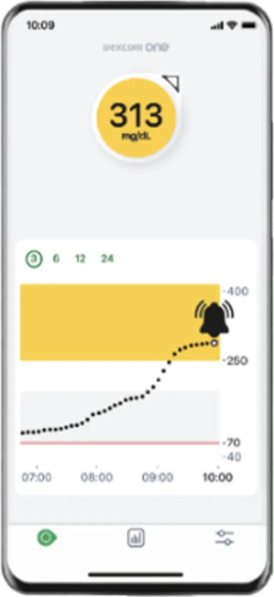Attenzione: Gli avvisi Dexcom ONE seguono le impostazioni del tuo telefono. Quindi, se il tuo telefono è silenziato o in modalità Non Disturbare, non riceverai alcun avviso sonoro.